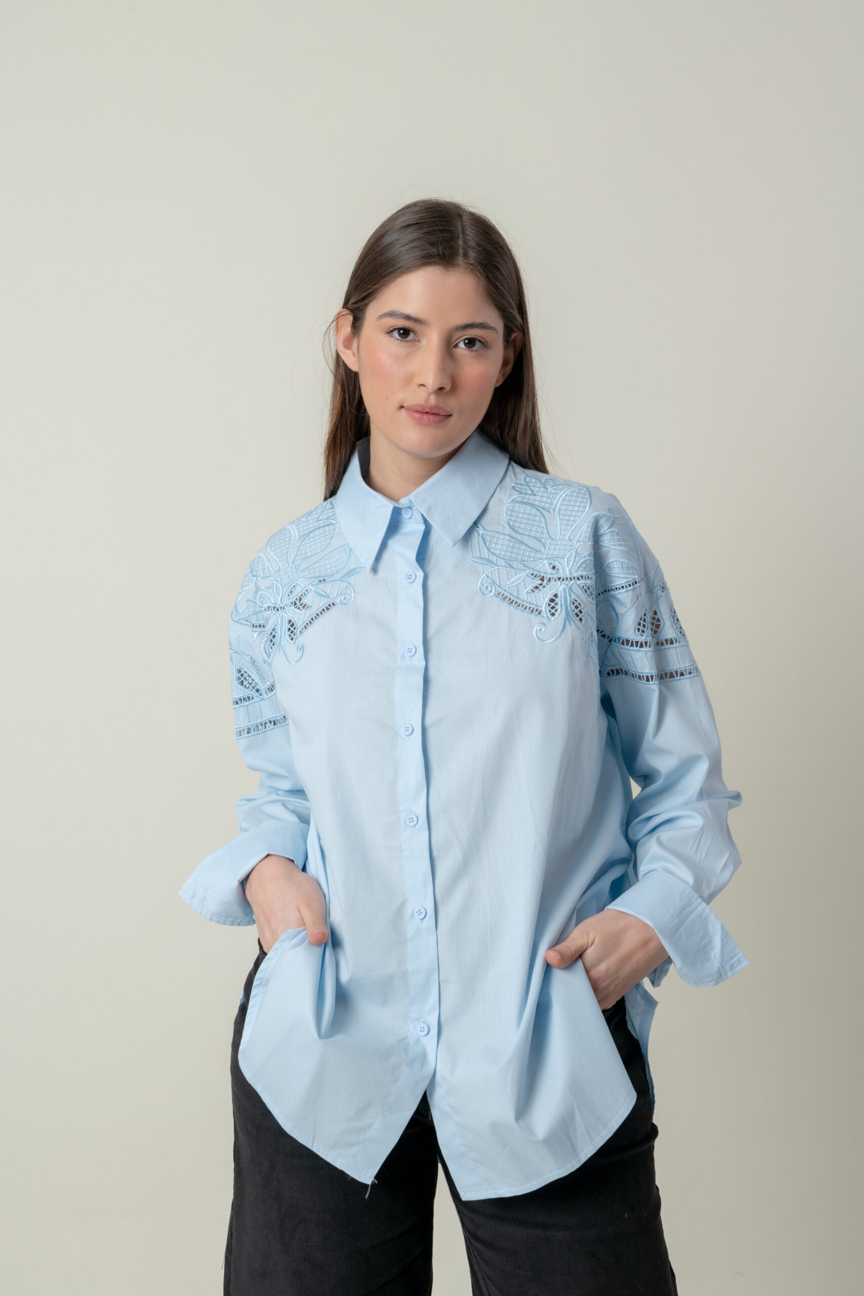 Divinas Camisas en Poliester, con gran detalle de bordado y calado.