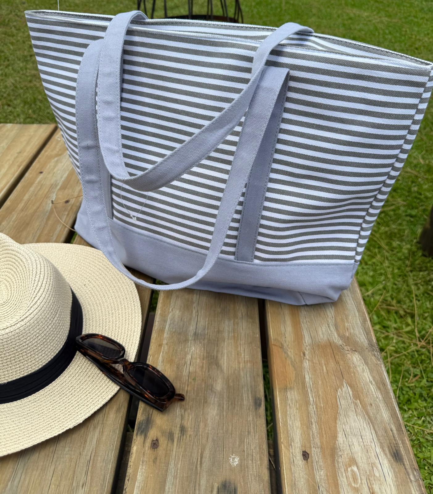 Los bolsos de playa son todos con cierre y forro con bolsillos.