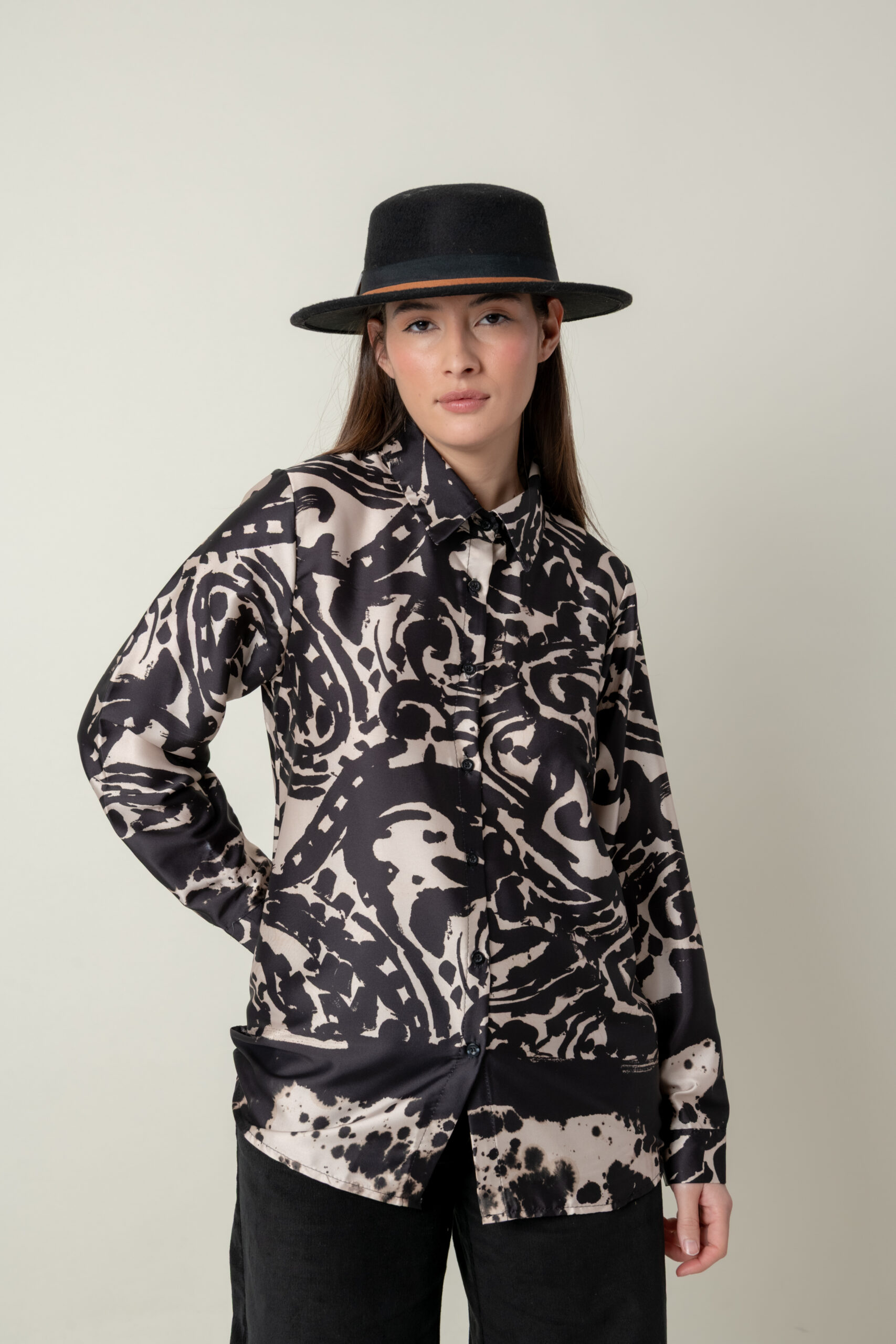 Divina Camisa realizada en seda en 2 colores, blanco y negro.