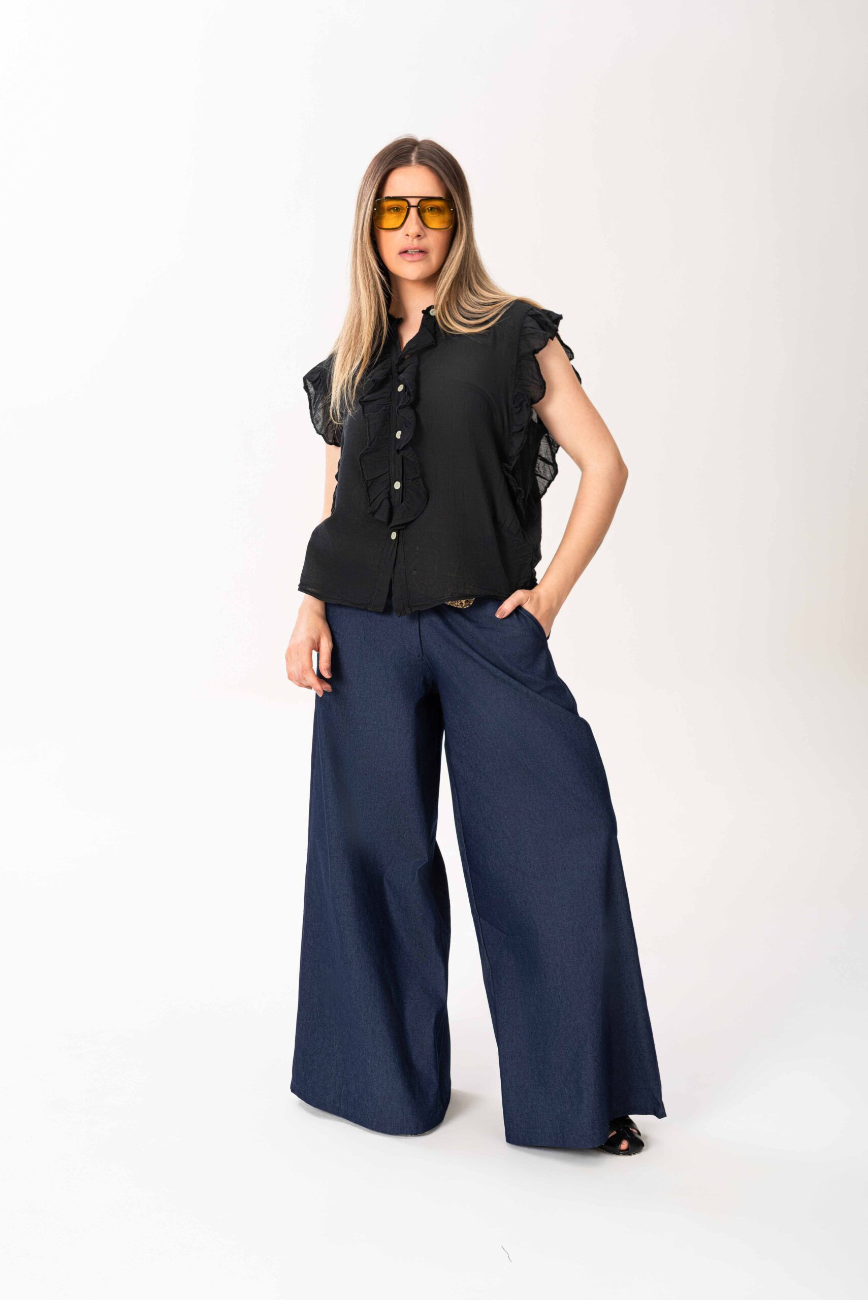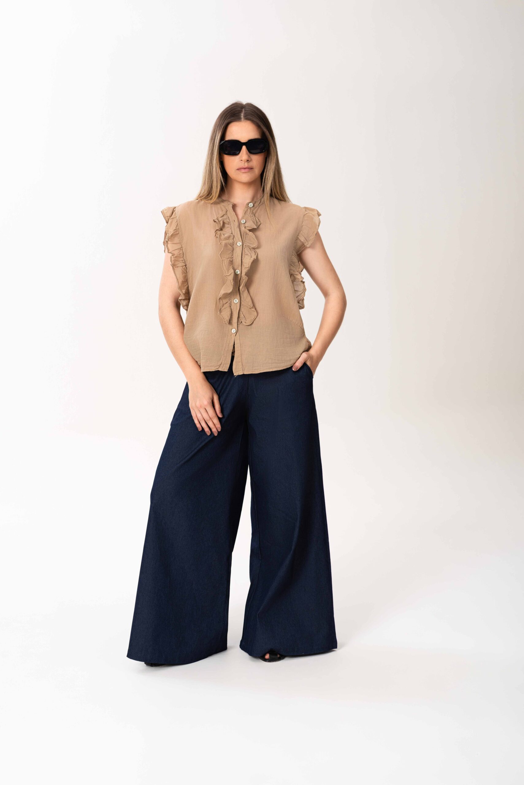 Camisa en algodón italiano con detalle de volados, en tendencia, un infaltable en la próxima temporada. Talle único, medidas 120 cms de contorno x 66 cms de largo, Divina!!