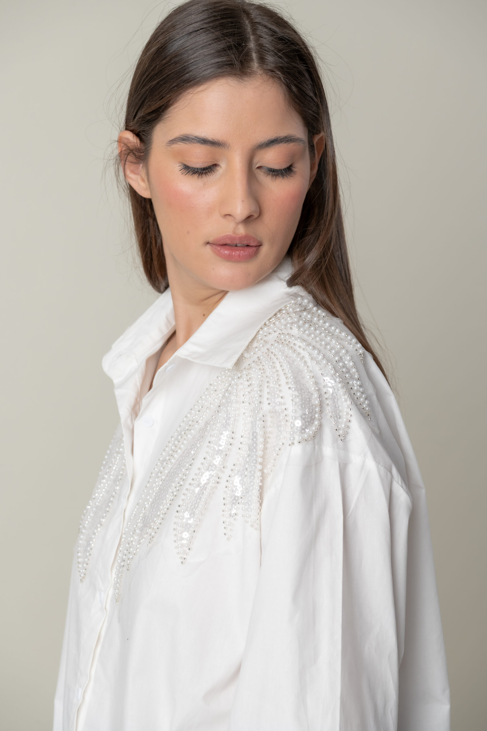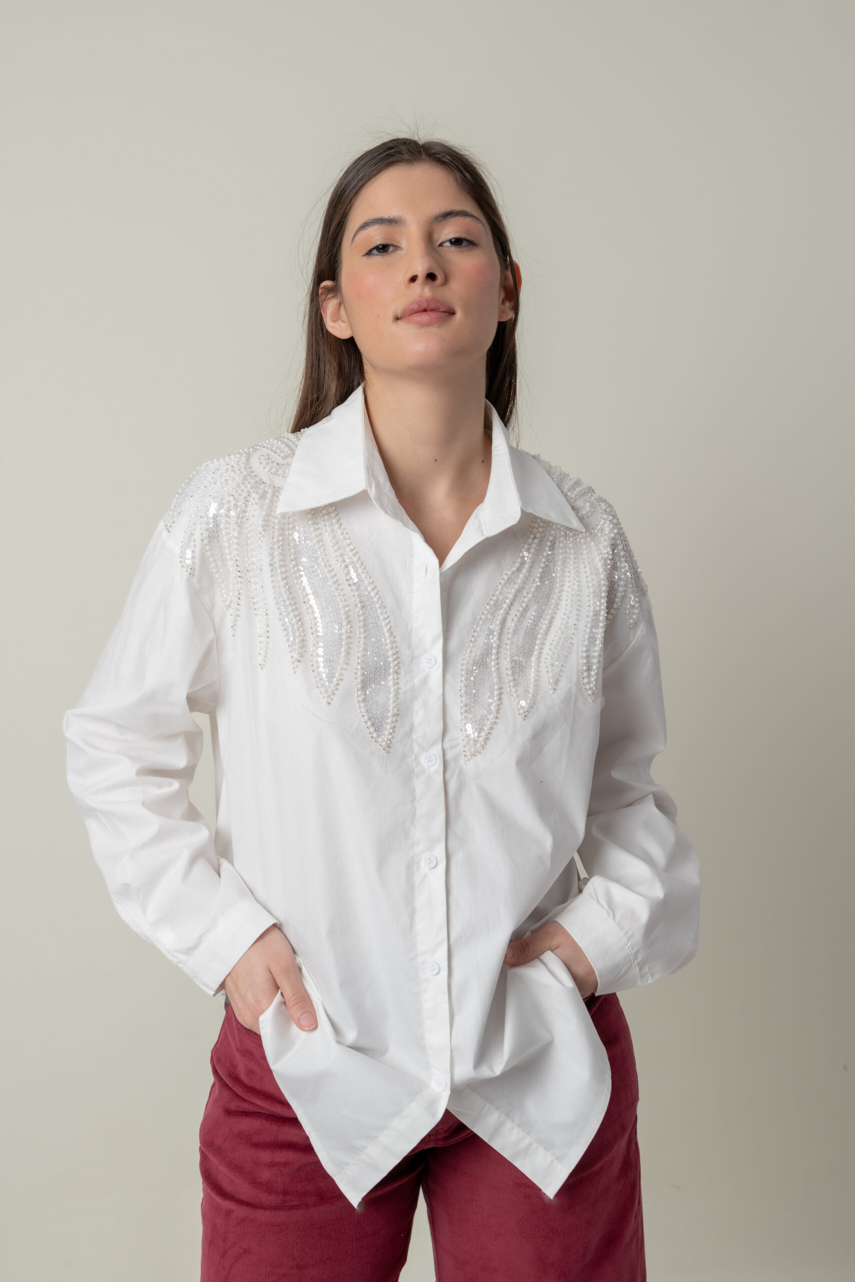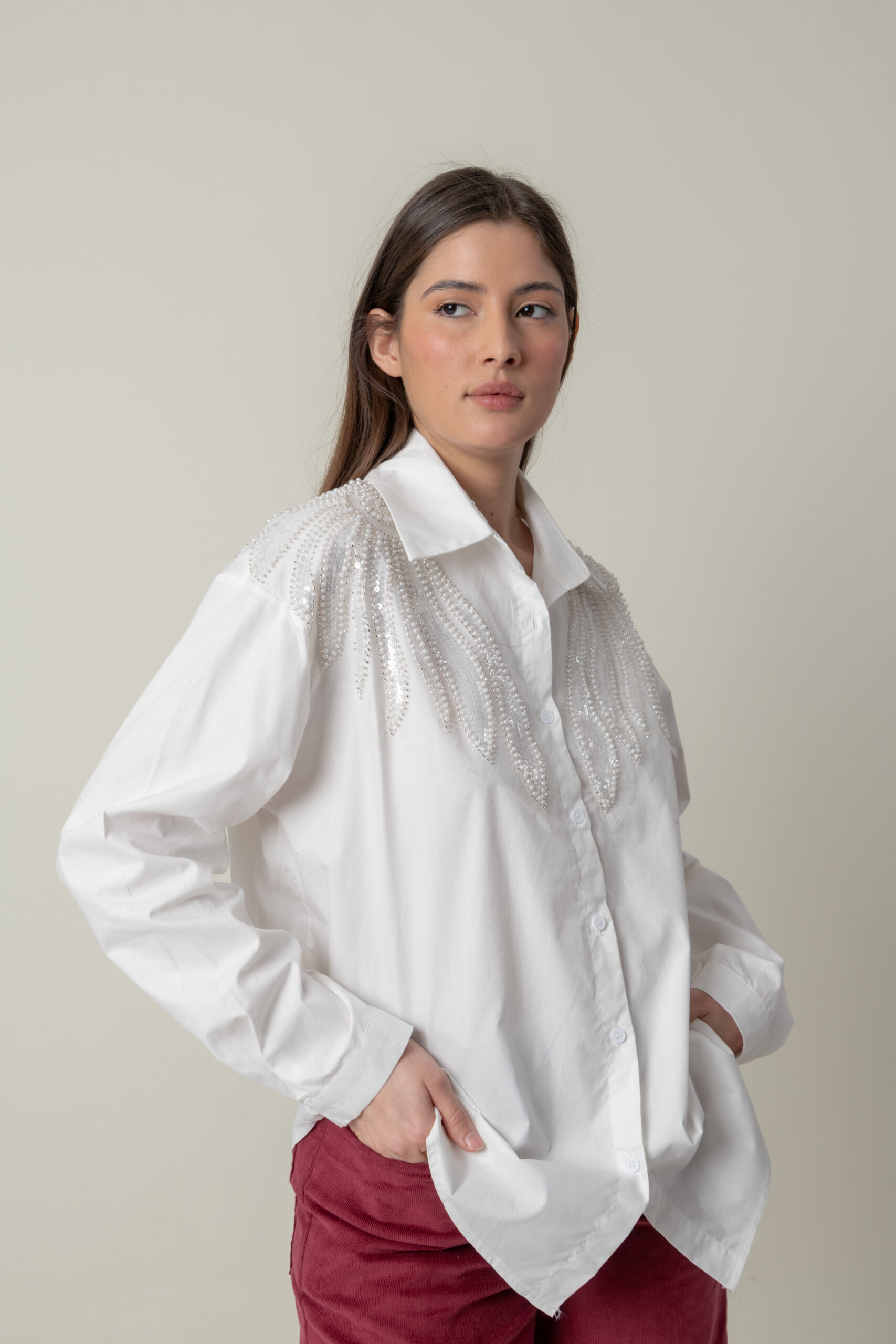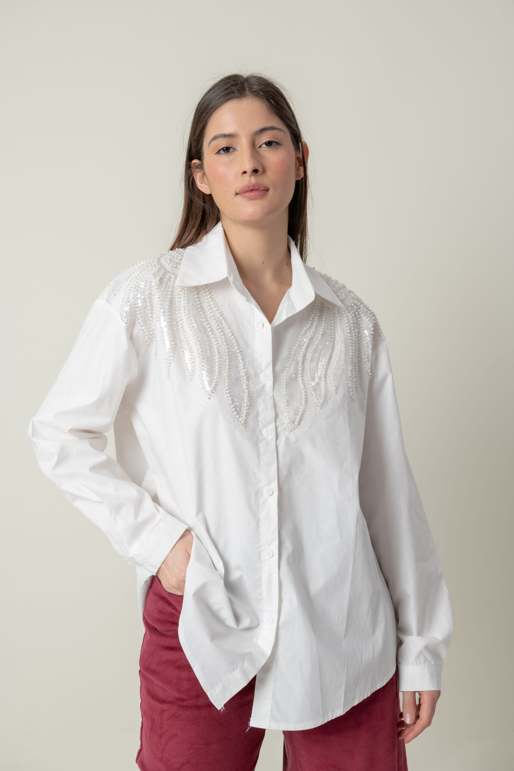 Divinas Camisas en Poliester, con gran detalle de bordado en Perlas