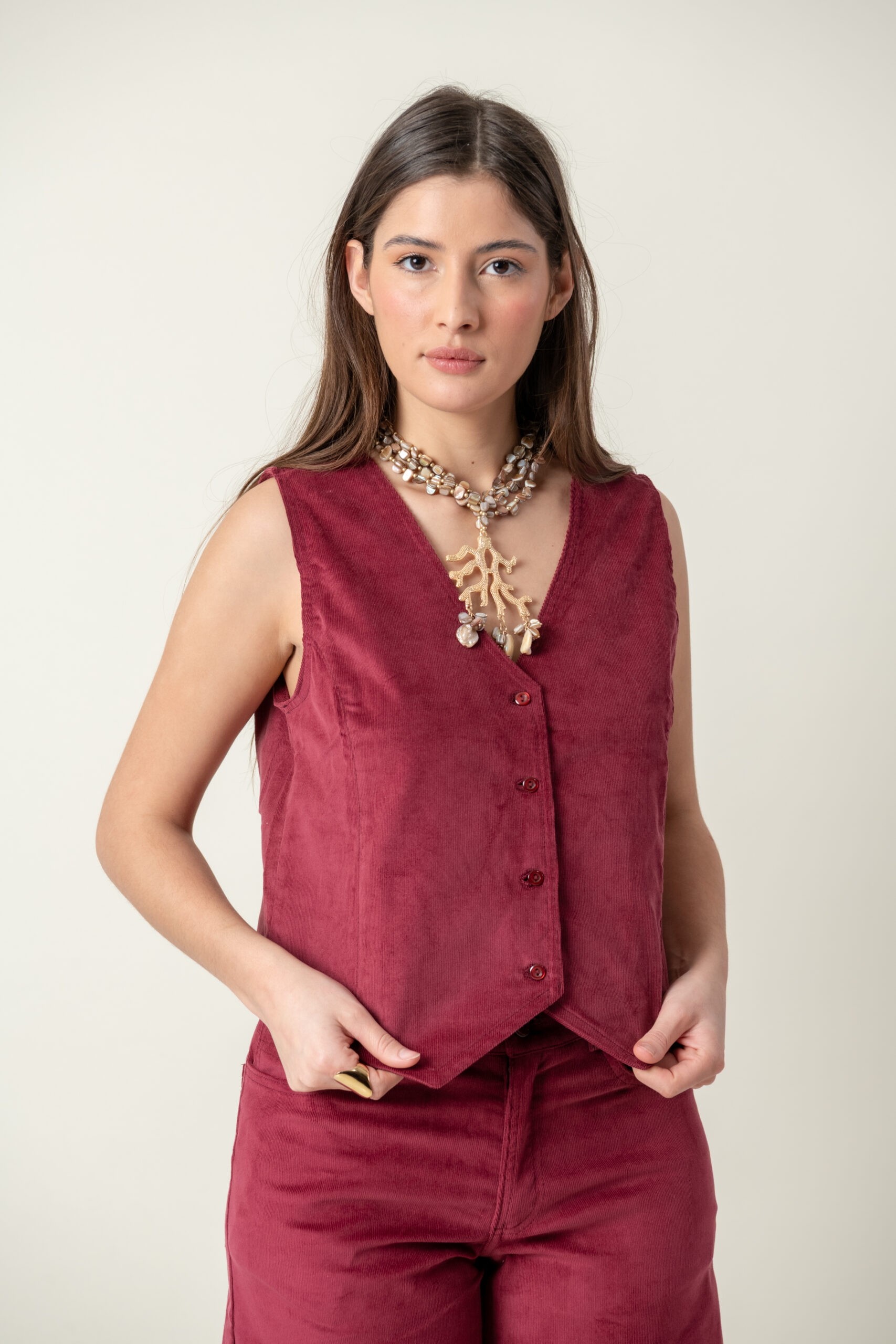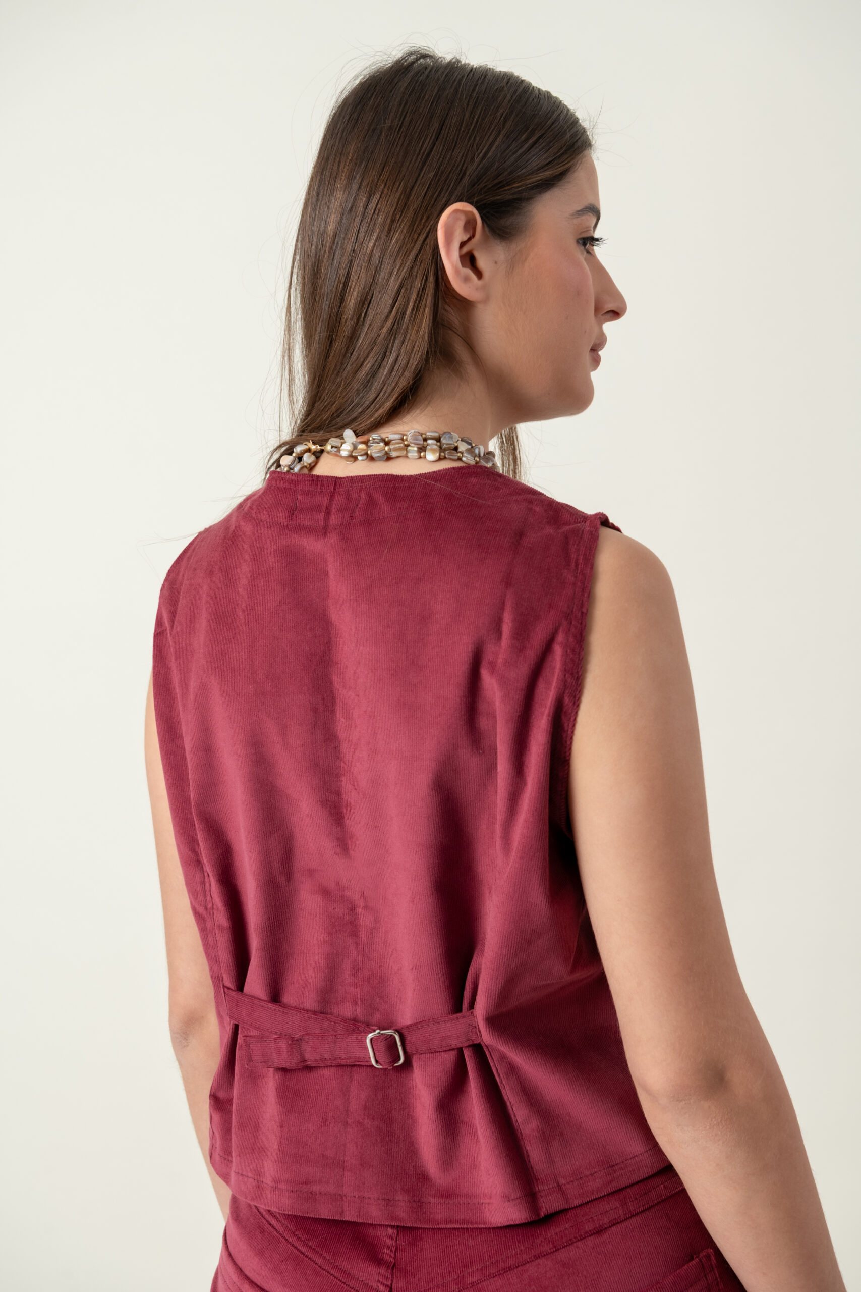 Divino chaleco tipo sastrero, talles S al XL. Cierra al frente con botones de metal y tiene atrás una martingala para entallar.