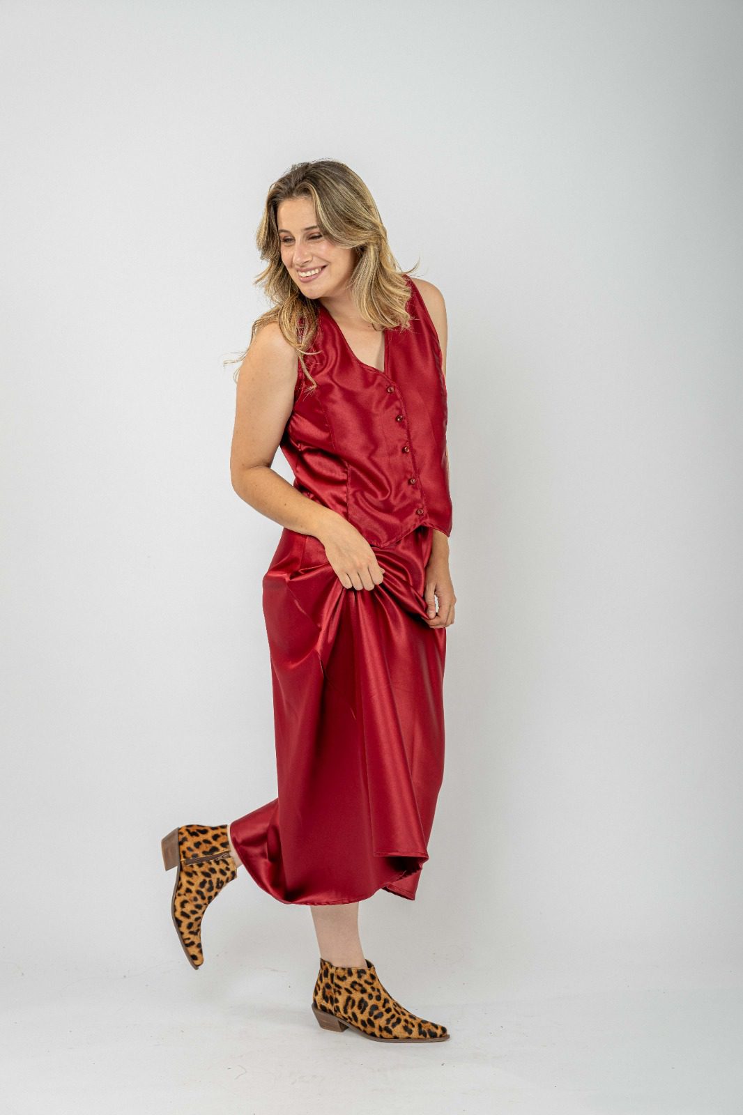 Chaleco tipo sastrero en satén bordó. último en talle M, IMPERDIBLE!