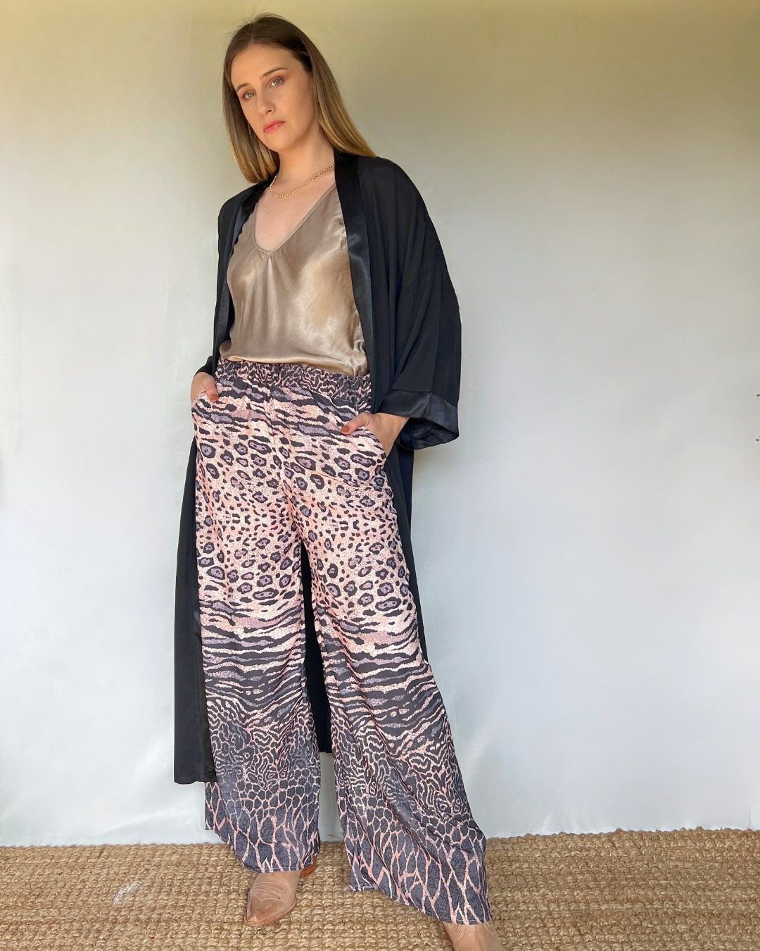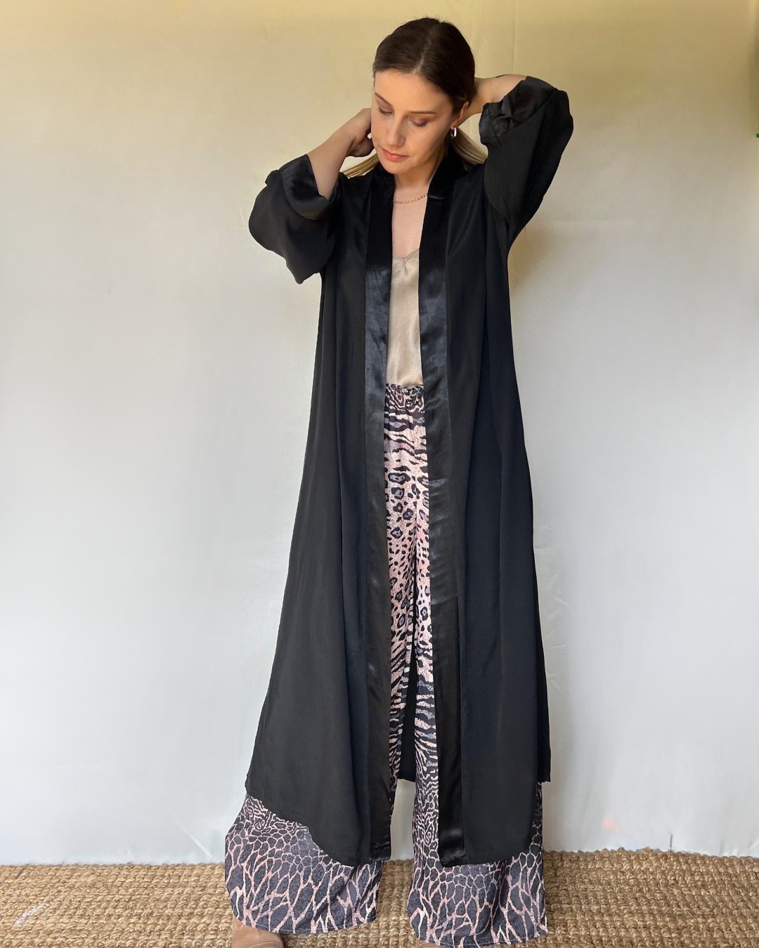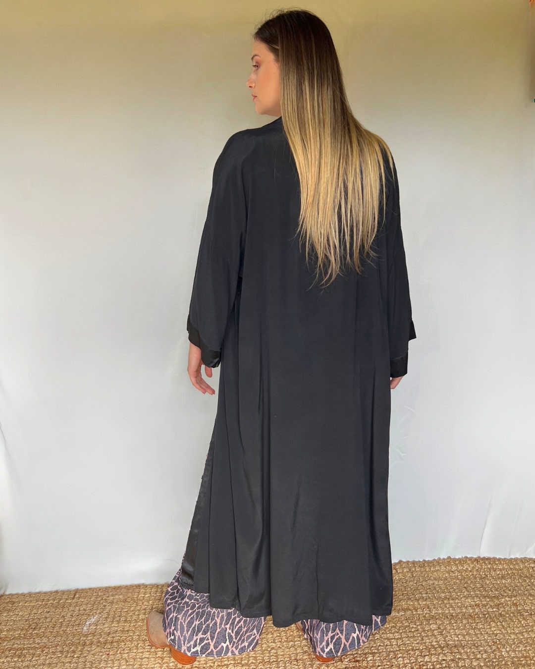 Kimono en Gasa con bordes de satén italiano, talle único.