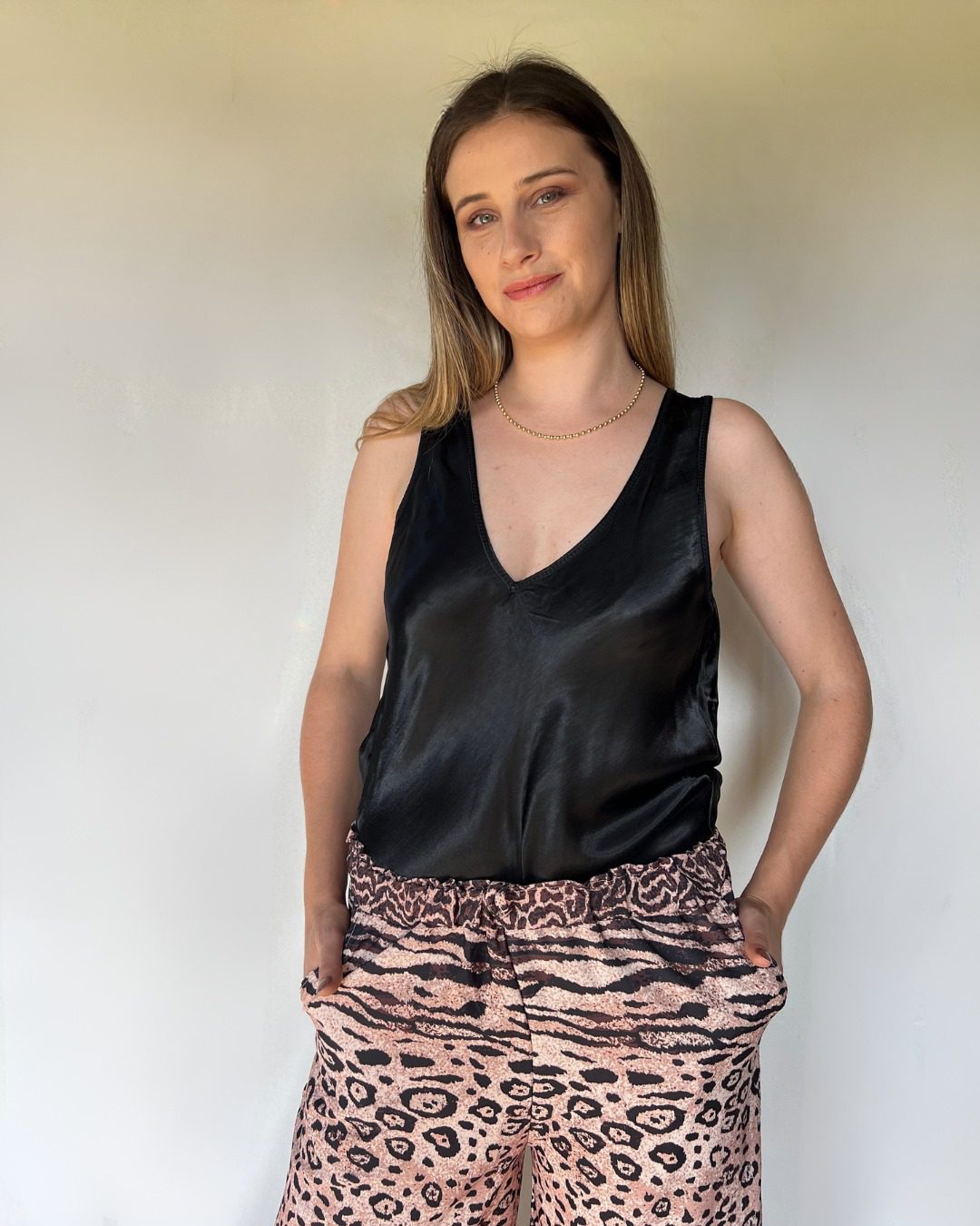 Divina Musculosa en Satén y un buen escote.
