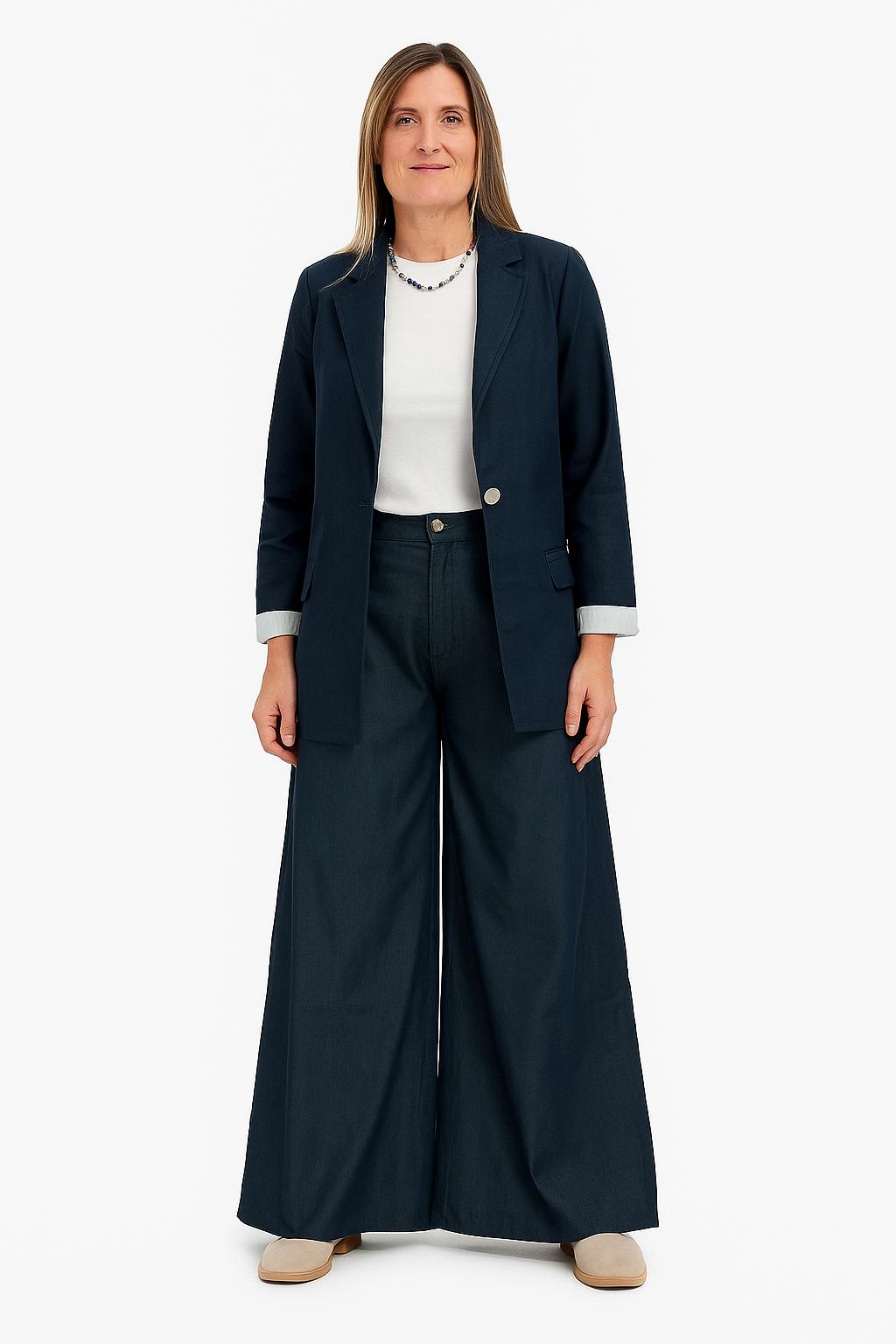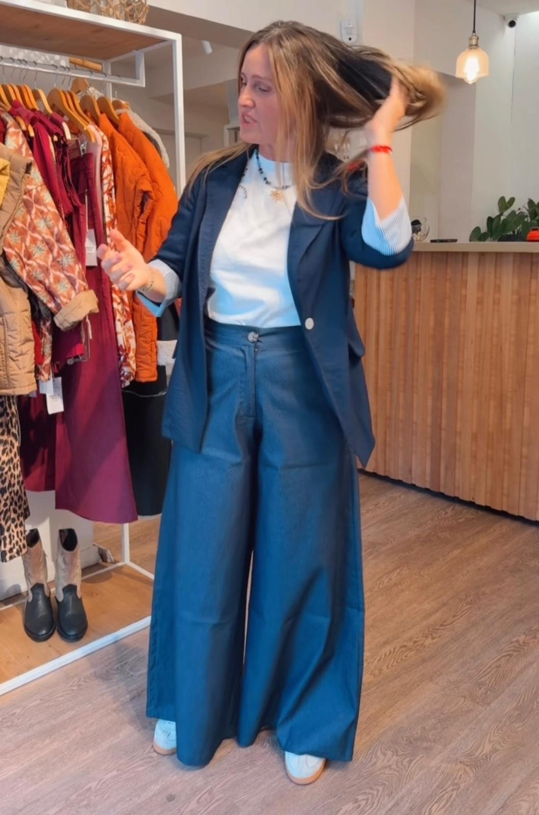 En tendencia! Pantalón en jean con spandex, cierra con botón y cierre, bolsillos laterales y elástico en cintura trasera que ajusta perfectamente. Del talle S al XL, hecho en Uruguay!