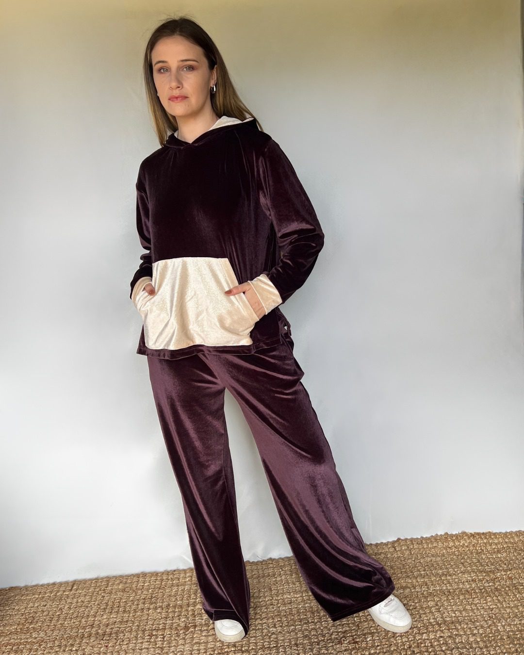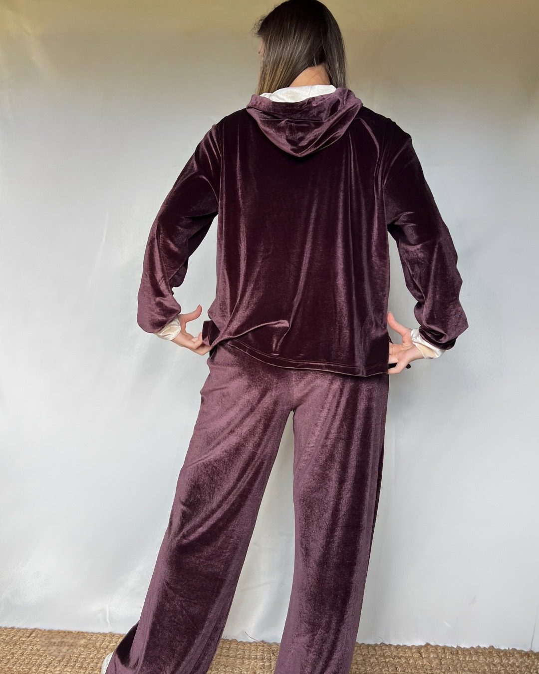 Pantalón realizado en terciopelo ancho, con bolsillos y elástico en cintura.