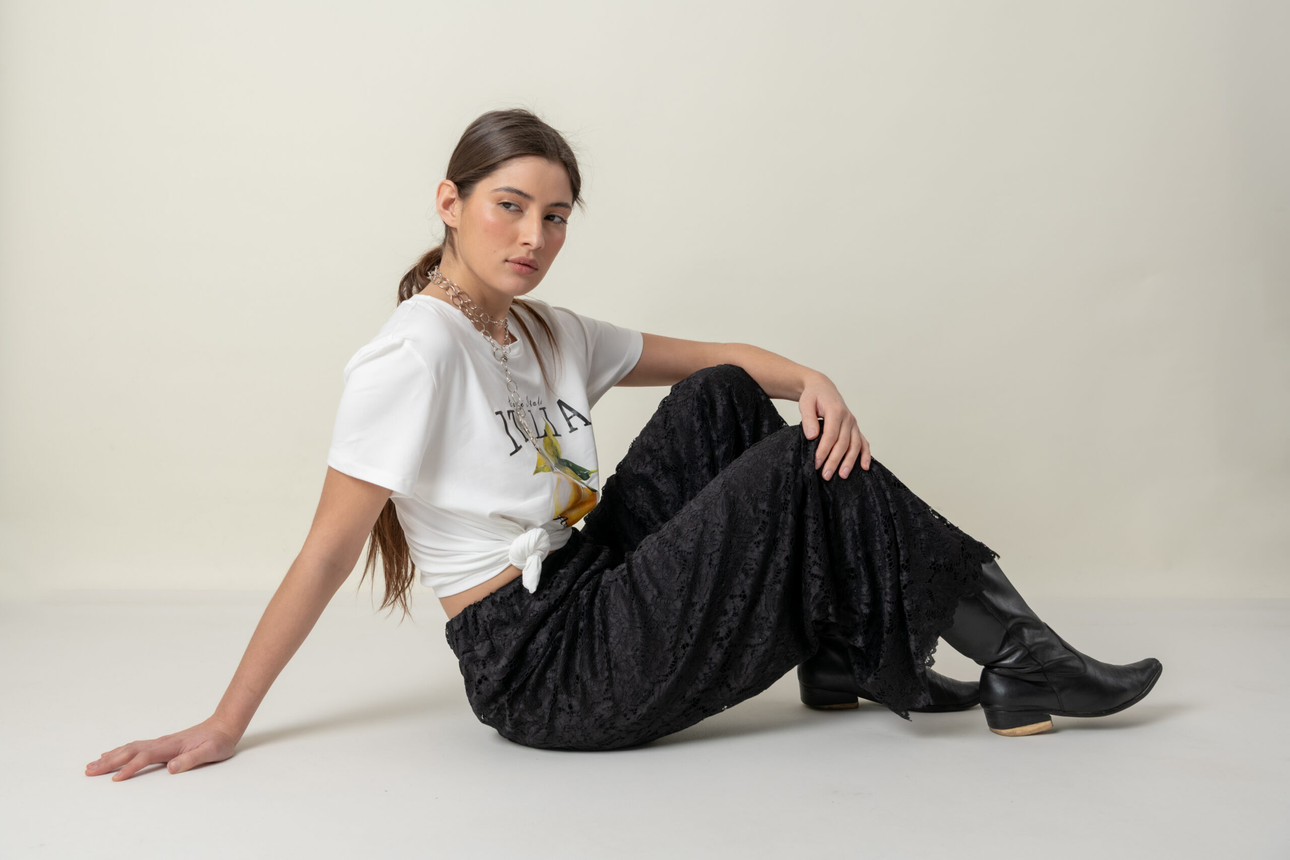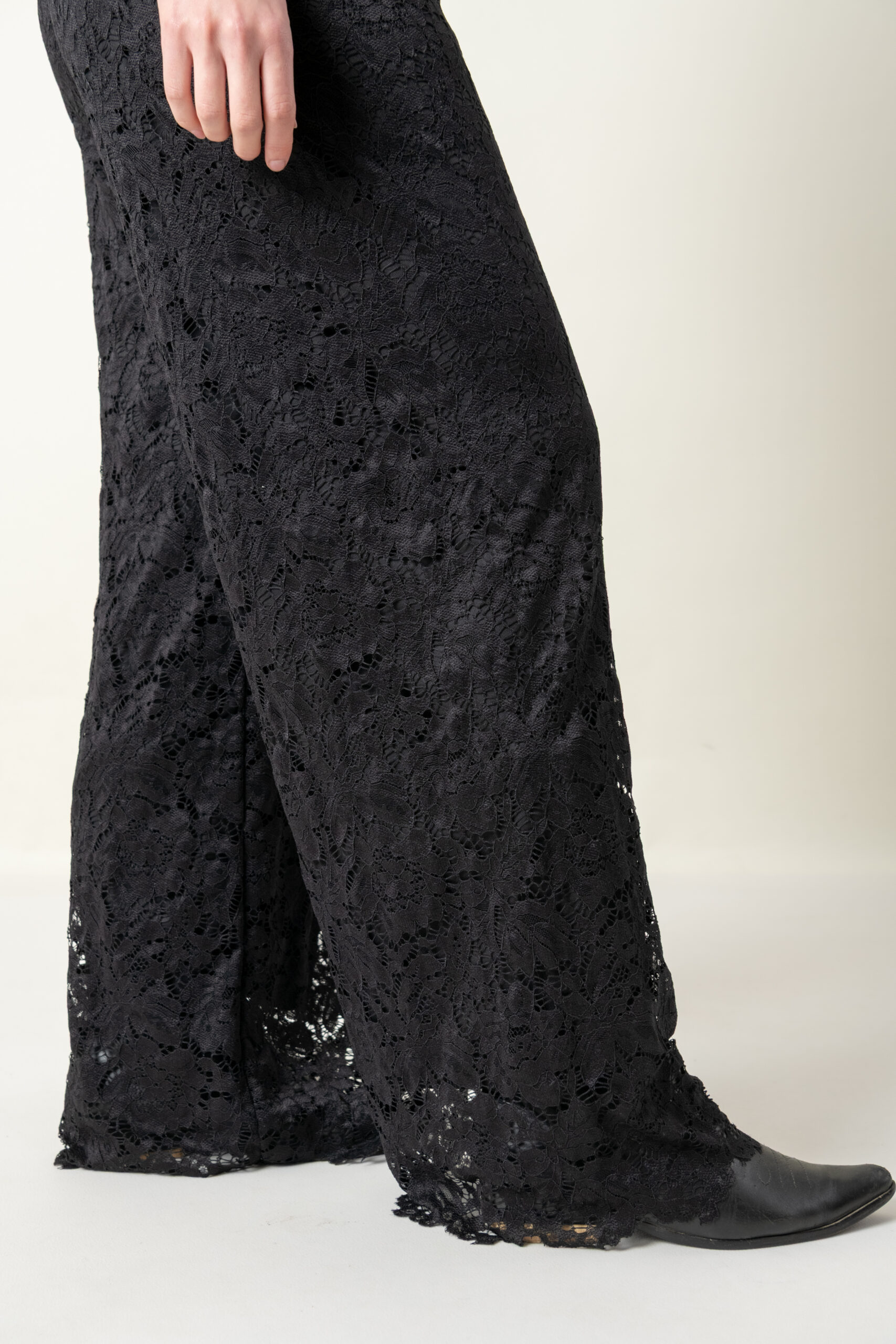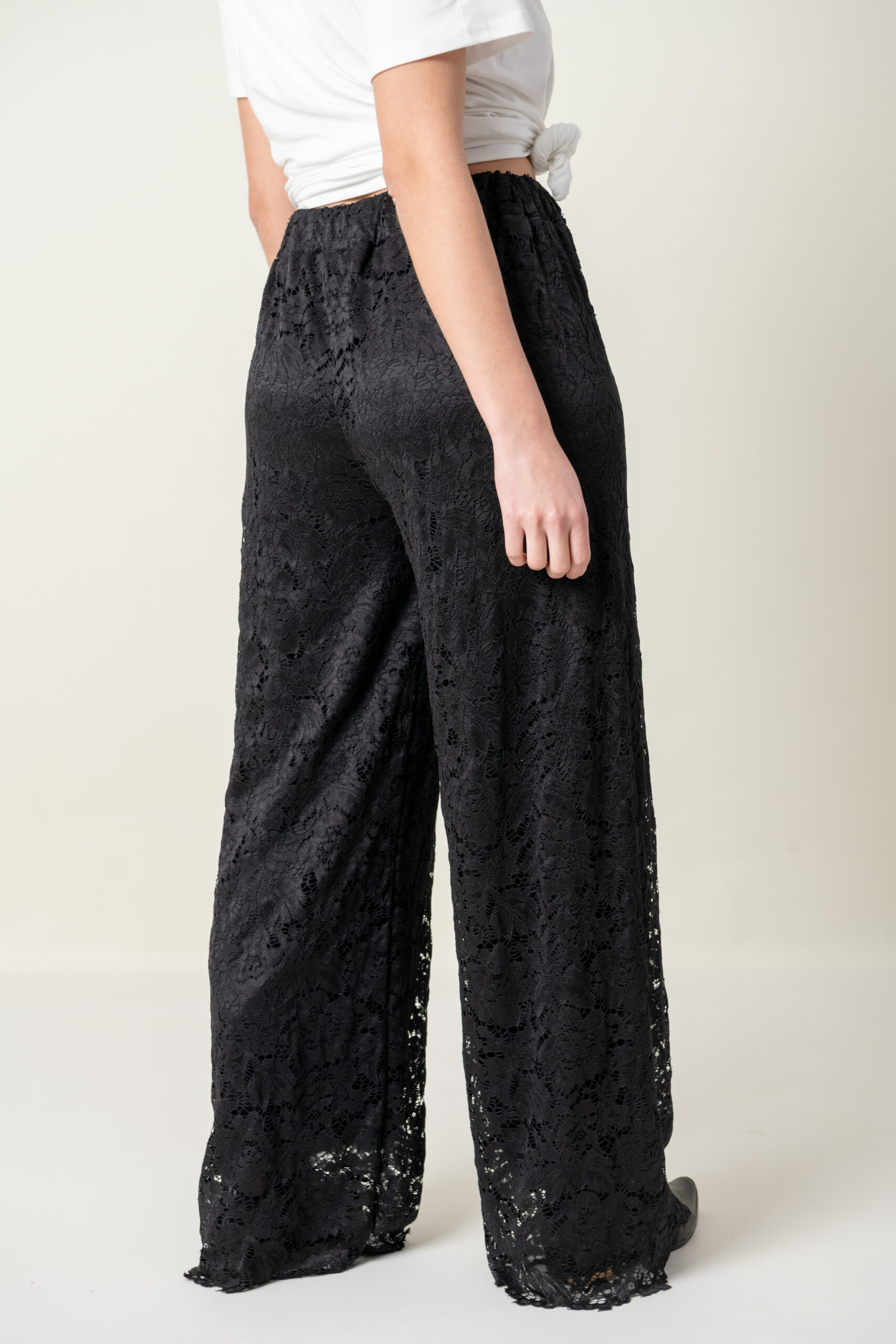 Pantalón realizado en encaje con spandex, totalmente forrado y elástico en cintura.
