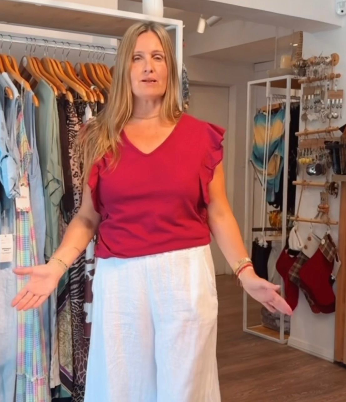 Remera en algodón y manga con volados en color bordo.