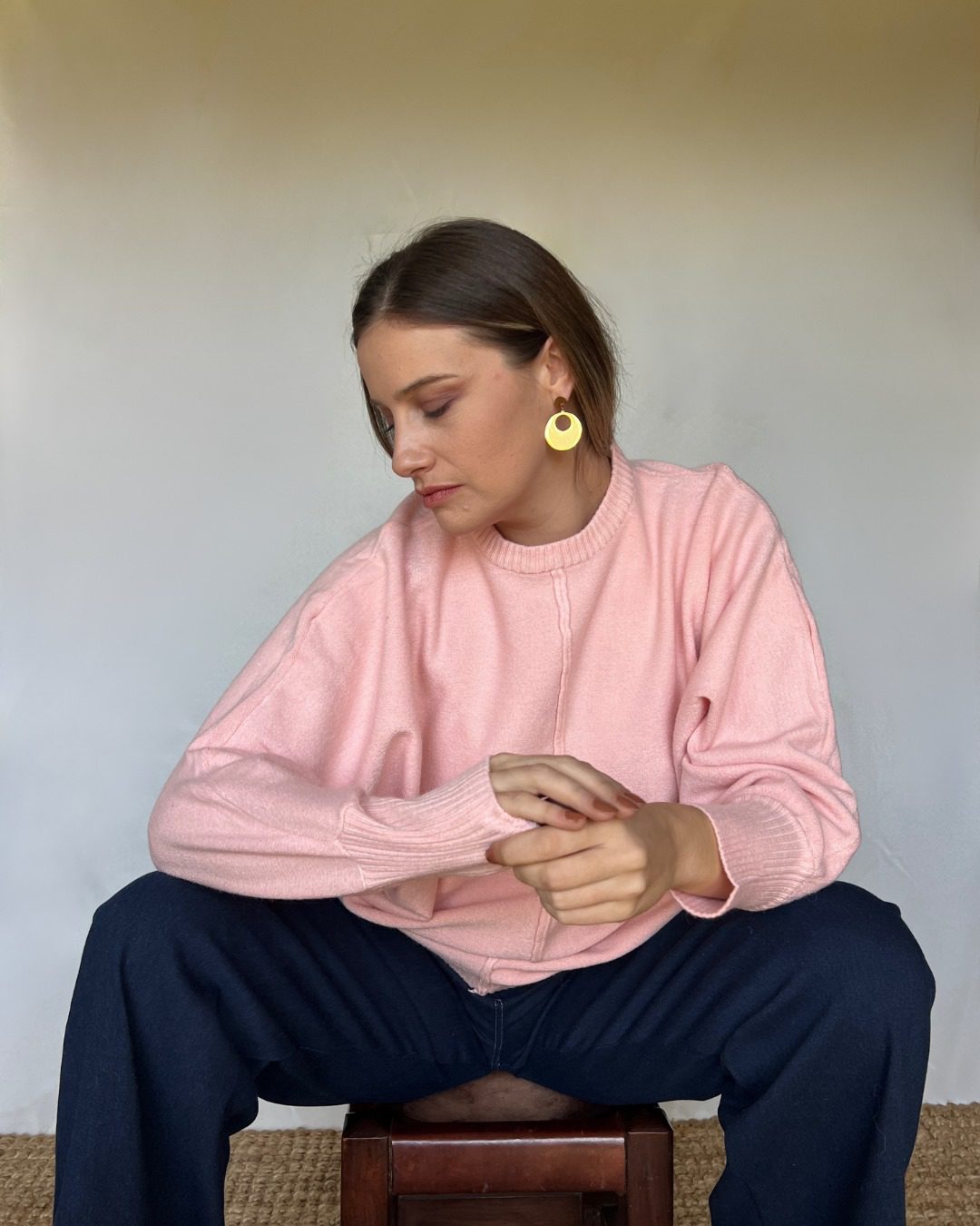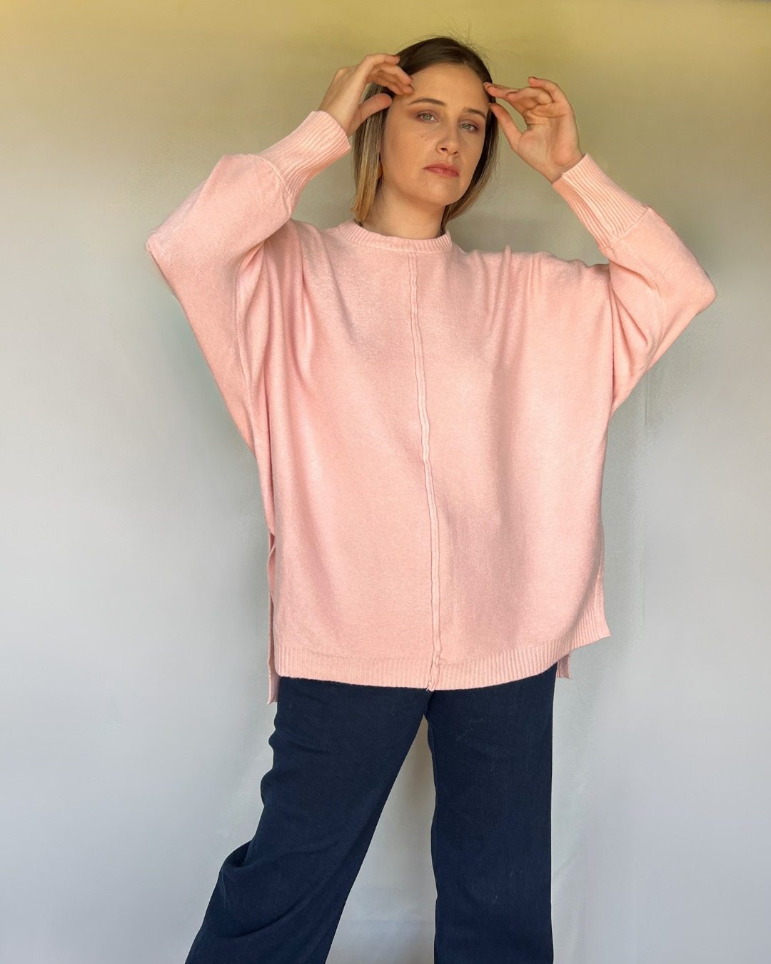 Divino buzo tejido de excelente calidad, apto para lavadora. Escote a la base, tajos al costado y costura en la delantera.