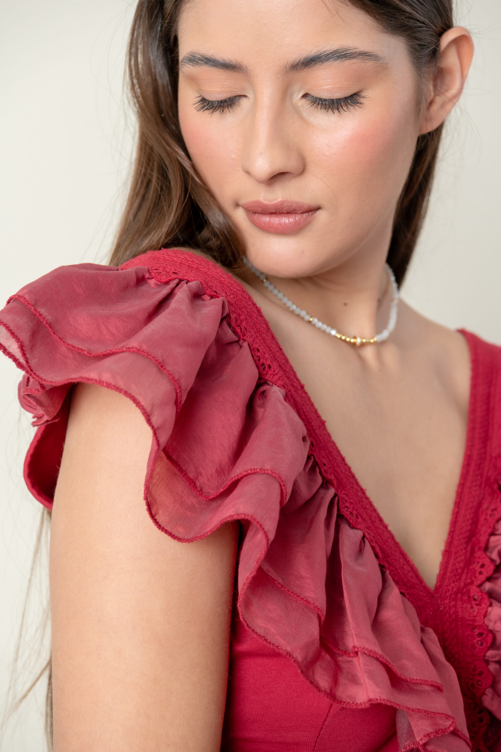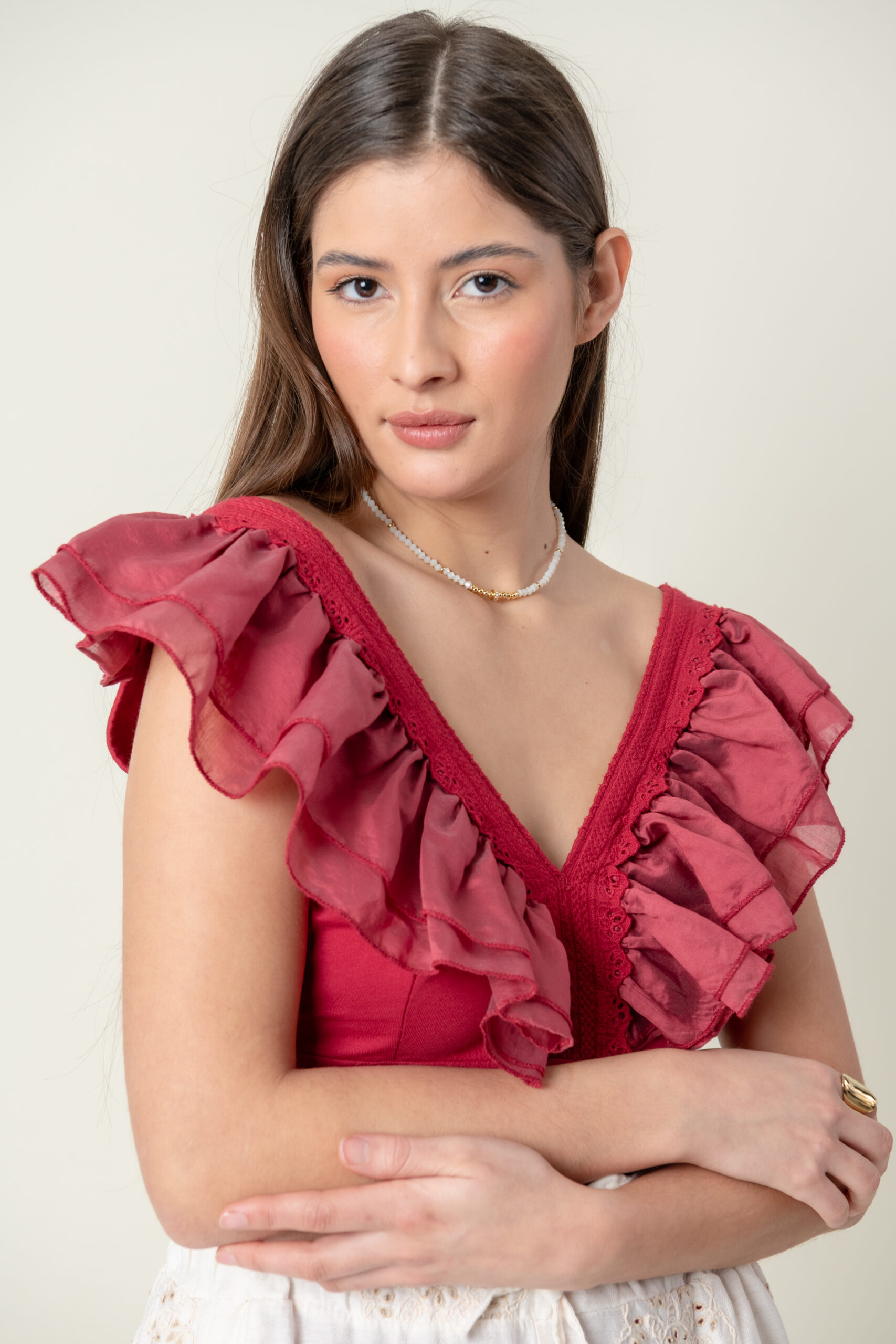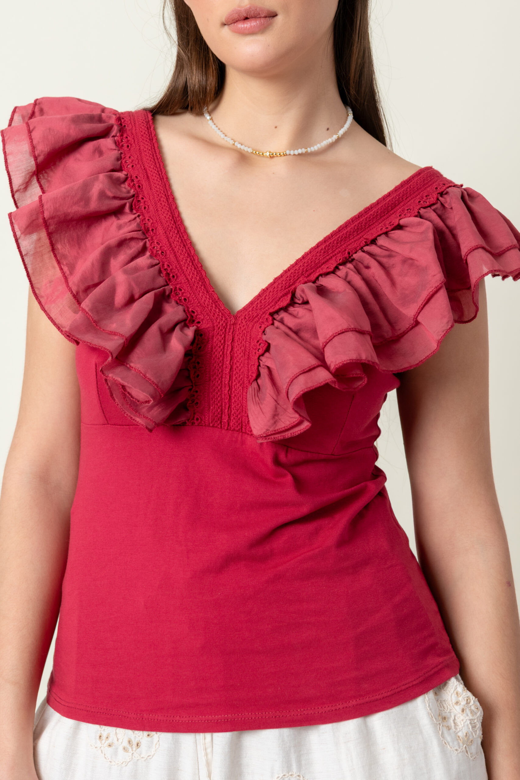 La Muscu más linda! En algodón escote en V, con volados que hablan por sí solos.